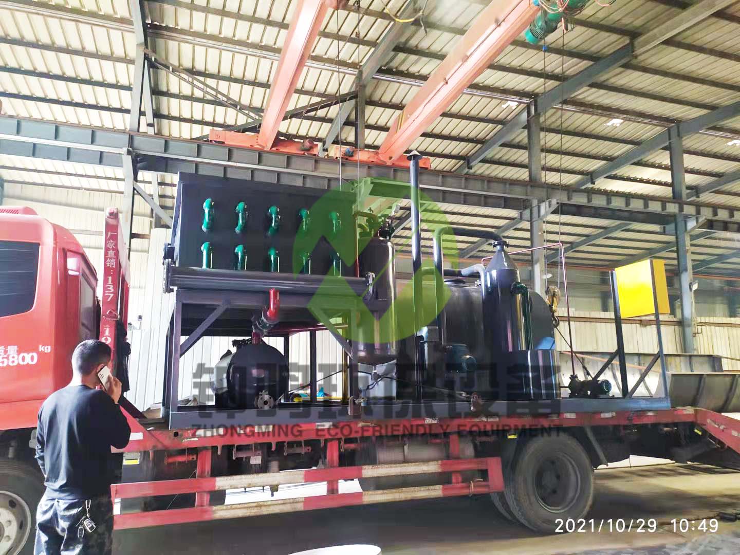 撬裝式可移動小型蒸餾設備發(fā)貨,方便移動,一輛小車輕松移動,移動式處理不同廢油,節(jié)省廢油危廢運輸費用